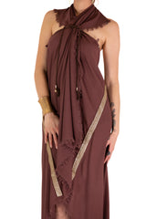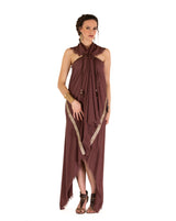 Constructed with care and precision, The Sage Archetype Poncho boasts a distinctive golden line that can gracefully adorn either the front or back, allowing you to showcase your inner goddess with every wear. This garment is not just clothing; it's an expression of your unique essence. Unlock the potential of transformation as The Sage Archetype Poncho seamlessly evolves into a dress or a skirt with simple adjustments done with the buttoms made of coconut. Your wardrobe becomes a canvas for endless looks, reflecting the multifaceted nature of the goddess within you.