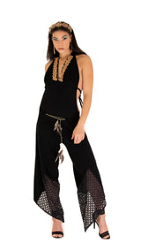 The Alchemist transformable dress, a masterpiece of sustainable fashion inspired by the timeless wisdom of the owl archetype. Much like the alchemist's quest to transmute the ordinary into the extraordinary, this dress embodies the essence of transformation. With its multifaceted design, it delves into the depths of the unconscious, offering insights to enrich our lives through newfound knowledge. The dress serves as a conduit to explore the mysteries of existence, revealing profound truths hidden in the depths. Seamlessly adaptable, it morphs effortlessly into various forms: a jumpsuit for versatility, a poncho for relaxed elegance, a skirt for timeless grace, two distinct styles of pants for chic versatility, and two different styles of tops for every occasion. With "The Alchemist," embrace the journey of transformation and unlock the boundless possibilities of sustainable style.