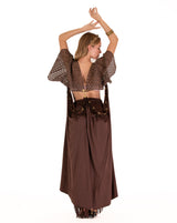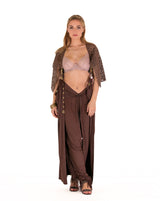 Crafted with precision, each Queen Cape is a testament to sustainability, Discover the versatility of The Queen Cape with seven wearable configurations, allowing women to tailor their style to suit their needs. Whether worn as a regal Queen cape, transformed into a chic dress, or adapted into harem pants, a skirt. distinct sleeve styles that can be double ass 3 way tops, this cape is a true manifestation of adaptable fashion.