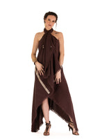 Constructed with care and precision, The Sage Archetype Poncho boasts a distinctive golden line that can gracefully adorn either the front or back, allowing you to showcase your inner goddess with every wear. This garment is not just clothing; it's an expression of your unique essence. Unlock the potential of transformation as The Sage Archetype Poncho seamlessly evolves into a dress or a skirt with simple adjustments done with the buttoms made of coconut. Your wardrobe becomes a canvas for endless looks, reflecting the multifaceted nature of the goddess within you.