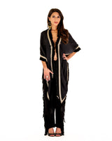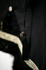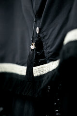Hand wash using cold water and neutral soap. Rinse out without rubbing and lay flat to dry at room temperature, avoiding sunlight. Iron at low temperature, using pressing cloth. Do not iron on beaded trim. Do not bleach. You can dry clean if you prefer.