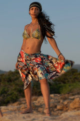 From wearing it as a poncho to dressing it down as a skirt, this dress accentuates the sensual curves of a woman’s form. As a gift, we include a beautiful copper belt to accessorize this versatile and beautiful dress.