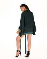 Crafted for versatility, this short kimono transforms into a zipper jacket dress. Embrace the unique adaptability of The Mystic Kimono, which can also be worn as kimono harem pants, perfect for moments of meditation or self-expression, thanks to the innovative design featuring a zipper. This adjustability reflects the fluidity of our lives, allowing you to move seamlessly between moments.