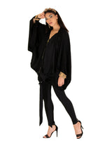 Crafted for versatility, this short kimono transforms into a zipper jacket dress. Embrace the unique adaptability of The Mystic Kimono, which can also be worn as kimono harem pants, perfect for moments of meditation or self-expression, thanks to the innovative design featuring a zipper. This adjustability reflects the fluidity of our lives, allowing you to move seamlessly between moments.